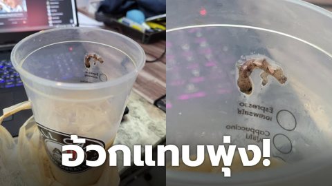 หนุ่มอ้วกแทบพุ่ง ดูดกาแฟเจ้าดัง เจอจิ้งจกอยู่ในแก้ว