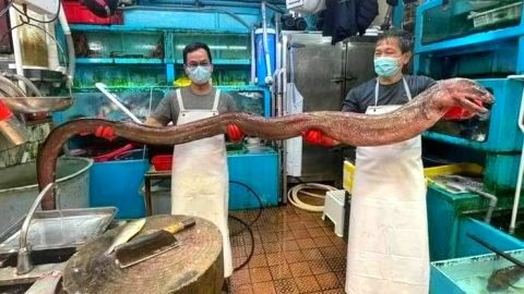 นึกว่าพญานาคี ชาวฮ่องกงจับปลาไหลมอเรย์ยักษ์ ยาวกว่า 12 ฟุต มาหั่นกิน