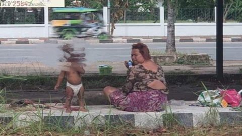สุดสงสาร เด็กน้อยถูกมัดเชือกผูกกับเสา ร้องไห้ลั่น