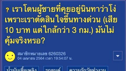 เราโดนผู้ชาย นินทาว่าโง่ เพราะขึ้นทางด่วน เสีย 10 บาท แต่ใกล้กว่า 3 กม. มันไม่คุ้มจริงหรอ?