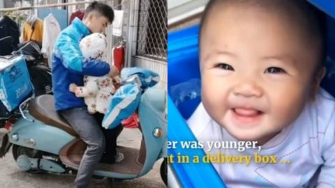 หนุ่มจีนสู้ชีวิต แบกลูกสาวใส่เป้ ขี่รถส่งของทั่วเมือง