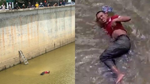หนุ่มค้ายาหนีตำรวจ รีบโดดลงคลอง ดันเจอน้ำตื้น