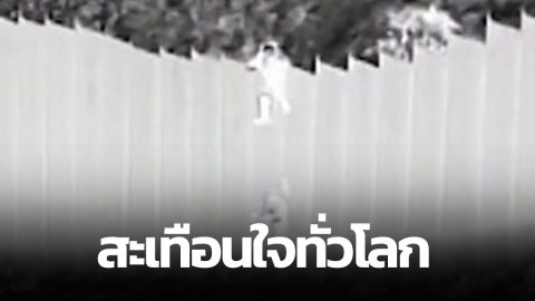 สะเทือนใจทั่วโลก หนูน้อย 2 คน ถูกหย่อนตัวลงพื้นแผ่นดินสหรัฐฯ จากกำแพงชายแดน สูง 4 เมตร (คลิป)