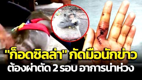 "ก็อดซิลล่า" ลิงอ้วน กัดมือนักข่าว ต้องผ่าตัด 2 รอบ อาการน่าห่วง