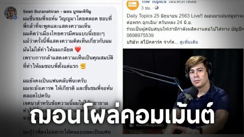 ฌอนโผล่คอมเม้นต์ เพจ The Topics ชาวเน็ตจวก ไม่ได้สำนึกอะไรขึ้นมาเลย
