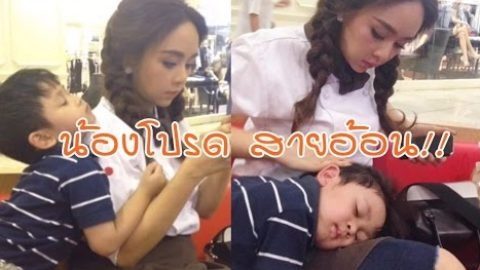 (คลิป) น้องโปรด โชว์ลีลาเอาหัวไถซบตัก อ้อนแม่ เป้ย ปานวาด ขณะขายชีสเค้ก