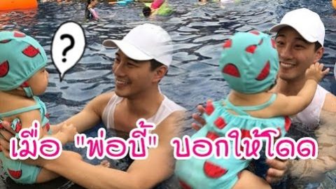 (คลิป) น้องเป่าเปา ในชุดว่ายน้ำแตงโม จะทำได้มั้ย! เมื่อ พ่อบี้ บอกให้โดดจากขอบสระ