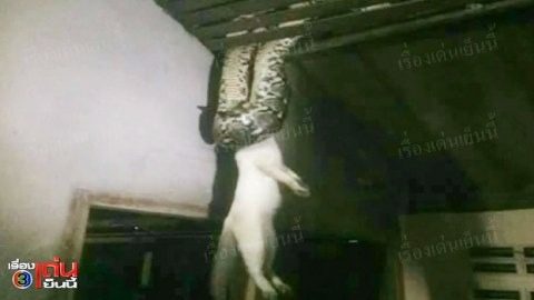 ชาวลำปางผวา งูหลามบุกเขมือบแมวกลางดึก