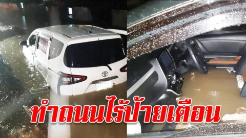 ทำทางป้ายเตือนก็ไม่มี ทำรถจมเละ ถามใครรับผิดชอบ!