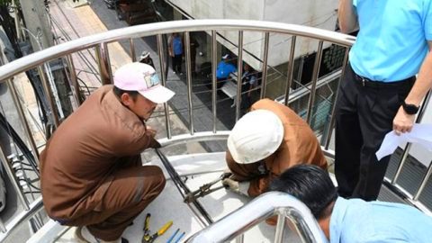 ตัดแล้ว สายเคเบิลขวางทางบนสะพานลอย