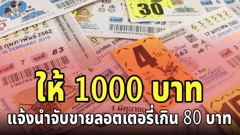 กองสลากให้ 1000 บาท แจ้งนำจับขายลอตเตอรี่เกิน 80 บาท