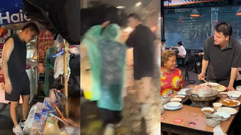ชื่นชม! "บูม เทย กะ ทะ" พาชายขายของเก่าติดฝน ยังไม่ได้กินข้าว ชวนไปกินหมูกระทะ