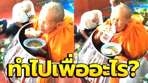 ชาวเน็ตวิจารณ์สนั่น พระสงฆ์นั่งฉันข้าวในบาตร แห่ถามทำไปเพื่ออะไร?