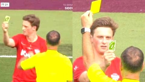 มีมดังทั่วโซเชี่ยล! ผู้ตัดสินแทบเหวอ แจกใบเหลืองให้นักเตะ แต่โดนนักเตะแจกการ์ดอูโน่ย้อนกลับ เพื่อล้างใบเหลือง