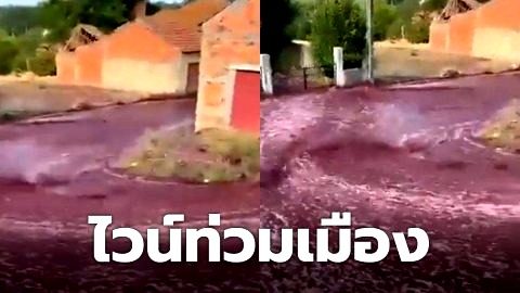 แม่น้ำไวน์แดง! เมืองเลวีรา ประเทศโปรตุเกส เกิดเหตุตู้ไวน์ขนาดใหญ่ 2 ตู้แตก ส่งผลให้มีไวน์ท่วมถนน