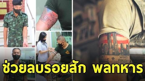 Tattoo เปลี่ยนชีวิต กองพันบริการ ศูนย์การทหารปืนใหญ่ ลพบุรี. พา พลทหารลบรอยสัก ที่อยู่นอกร่มผ้า