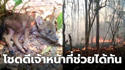 น่าสงสาร! จนท.อุทยานแห่งชาติ พบ "ลูกหมาจิ้งจอก" นอนขดผวาไฟป่า โชดดีเจ้าหน้าที่ช่วยได้ทันเวลา