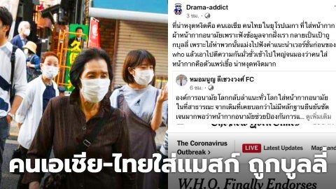 เพจดังจวก คนเอเชีย คนไทยในยุโรป-เมกา ที่ใส่หน้ากแมสก์ เพราะฟังข้อมูลจากฝั่งเรา จนกลายเป็นเป้าถูกบุลลี่