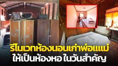 สาวแปลงโฉมห้องนอนเก่าพ่อแม่ ให้เป็นห้องหอ สีชมพูหวานแหวว