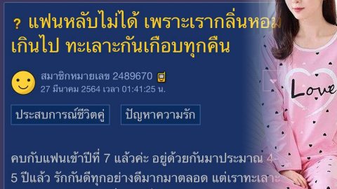แฟนหลับไม่ได้ เพราะเรากลิ่นหอมเกินไป ทะเลาะกันเกือบทุกคืน