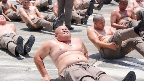 ไม่เฟริม์ ไม่เลิก!! เผยภาพตำรวจถอดเสื้อ ออกกำลังกาย