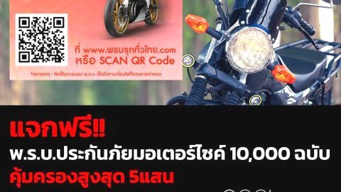 แจกฟรี!! พ.ร.บ.ประกันภัยมอเตอร์ไซค์ 10,000 ฉบับ คุ้มครองสูงสุด 5 แสนบาท