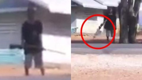 น่ากลัวมาก!! ชายถือปืนยาว เดินไปมา ตำรวจบอกให้เกิดเหตุก่อน ถึงเข้ามาได้