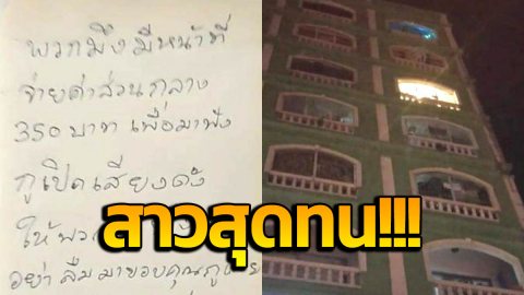 สาวสุดทน! เพื่อนบ้านเปิดดังลั่น ติดกระดาษเย้ย "พวกมึงจ่ายส่วนกลาง เพื่อฟังกูเปิดเพลง"