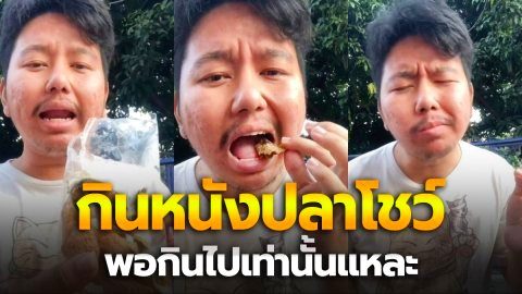หนุ่มโชว์กิน หนังปลากรอบ มั่นใจทำจากปลา พอกินไปเท่านั้นแหละ