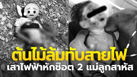 สุดสงสาร ต้นไม้ล้มทับสายไฟ เสาไฟฟ้าหัก ช๊อต 2 แม่ลูก สาหัส