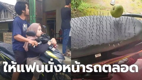 ชาวบ้านสงสัย หนุ่มขับรถจยย.ให้แฟน นั่งหน้ารถตลอด ก่อนเห็นชัดๆที่เบาะหลัง