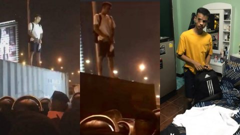 รวบแล้ว หนุ่มปีนตู้คอนเทนเนอร์ ฉี่รดหัวตำรวจ