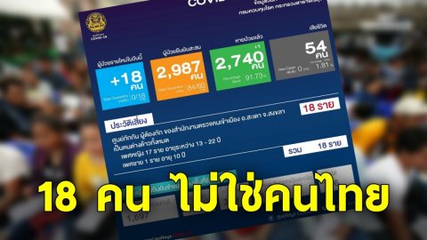 ไม่ใช่คนไทย!! ผู้ติดเชื้อโควิด-19 ใหม่ 18 ราย เป็นต่างด้าว ที่ศูนย์กักกัน จ.สงขลา