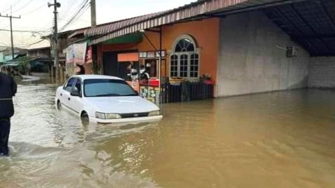 พนังกั้นน้ำริมฝั่งแม่น้ำโก-ลก แตก ส่งผลกระทบประชาชน 450 ครัวเรือน