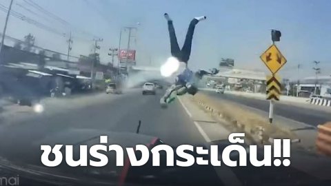 อุทาหรณ์ มอเตอร์ไซค์วิ่งตัดหน้า กระบะเบรกไม่ทัน ชนเต็มแรง ร่างกระเด็นหลายเมตร (มีคลิป)