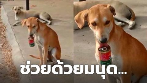 สาววอนช่วยสุนัข ปลากระป๋องติดลิ้น งานนี้ต้องถึงกู้ภัยเข้าช่วย (มีคลิป)