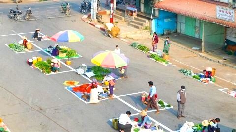 น่าชื่นชม!! ตลาดสดในพม่า เว้นระยะห่างกันติดโควิด19