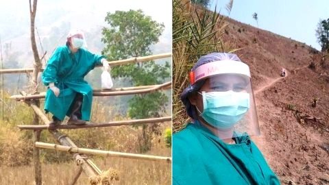 นับถือใจ!! หมอเดินทางไปเยี่ยมคนไข้ที่กักตัวอยู่ในไร่ สุดยอดมากเดินข้ามเขาไปสองลูกเลย