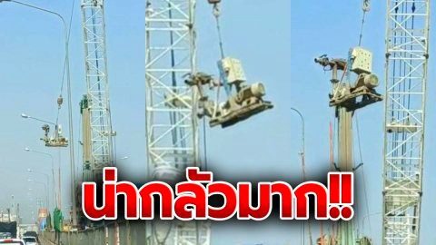 น่ากลัวมาก!! ก่อสร้างผูกสลิง ถนนพระราม 2 แกว่งไปมาแบบนี้