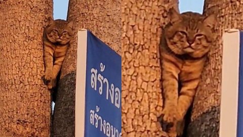 ช่วยด้วยนุด!! สาวเจอแมว อยู่บนต้นไม้ ลงมาไม่ได้ เพราะติดพุง