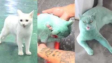 ย้อมแมวที่แท้ เบื่อแล้วแมวสีขาว อยากห้าวเป็นแมวสีเขียว