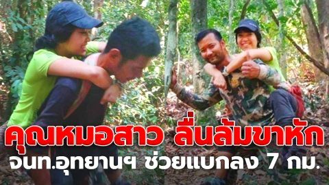 สุดปลื้ม! คุณหมอสาว ลื่นล้มขาหัก จนท.อุทยานฯ ช่วยแบกลง 7 กม.