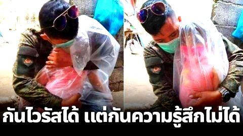 ภาพซึ้งใจ!! พ่อกอดลูกน้อย ผ่านถุงพลาสติกหุ้ม กันไวรัสได้ แต่กันความรู้สึกไม่ได้