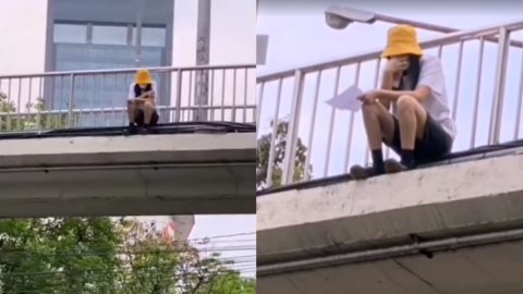สาวจีนนั่งเครียด อยากกลับบ้าน วีซ่าหมดอายุ นั่งเครียดบนสะพาน
