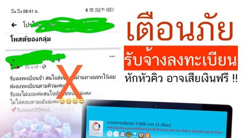 เตือนภัย!! ขบวนการรับจ้างลงทะเบียน หักหัวคิว อาจเสียเงินฟรี !!