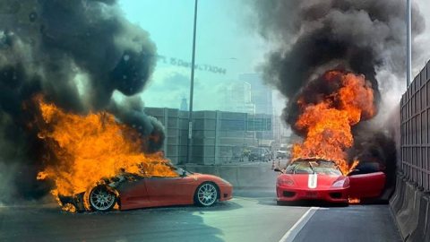 ไฟไหม้วอด รถสปอร์ต Ferrari สีแดง บนทางด่วนฯ