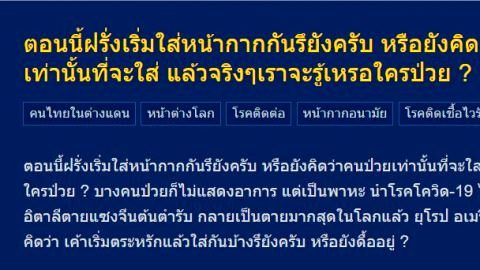 ดราม่าสนั่น ชาวเน็ตลั่นใส่หน้ากากหรือไม่ใส่ติดเชื้อได้เหมือนกัน เชื้อจะติดอยู่ตามเสื้อผ้า