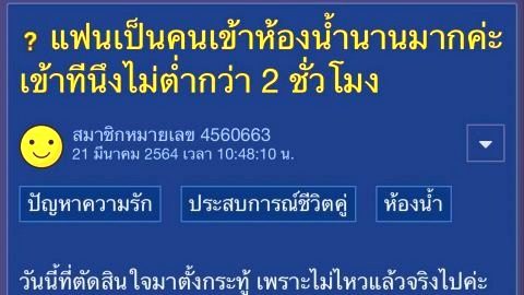 แฟนเข้าห้องน้ำนานมากค่ะ เข้าทีนึงไม่ต่ำกว่า 2 ชั่วโมง