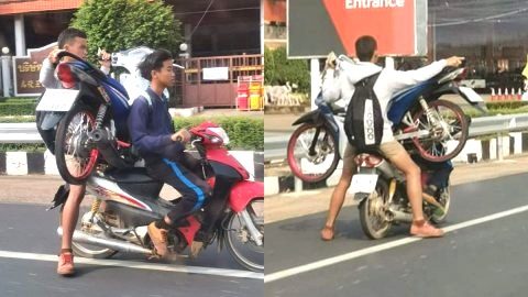 2 หนุ่มแสดงโชว์กลางถนน ฮากร๊ากเลย