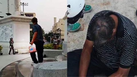 ลุงป่วยซึมเศร้า เอาน้ำมันราดอนุสาวรีย์ประชาธิปไตย